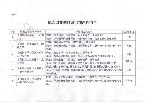 湖南省教育厅在通知中指出,为贯彻落实《湖南省大力支持大学生创业若干政策措施》,组织专家精心挑选了15门创业教育通识性课程,包含创业理论、实践方法、法律知识、跨学科工具及国内外创新资源,涵盖机会识别、精益创业、社会使命、科技融合、融资策略、知识产权等多元领域,兼顾基础通识与高年级专项技能培养,具有较强实践指导价值。现向全省高校予以推荐。各高校可结合各自创业教育工作安排,通过国家智慧教育平台、智慧树、学校官网等渠道获取相关课程资源,组织学生自主学习,并为教师提供教学参考。